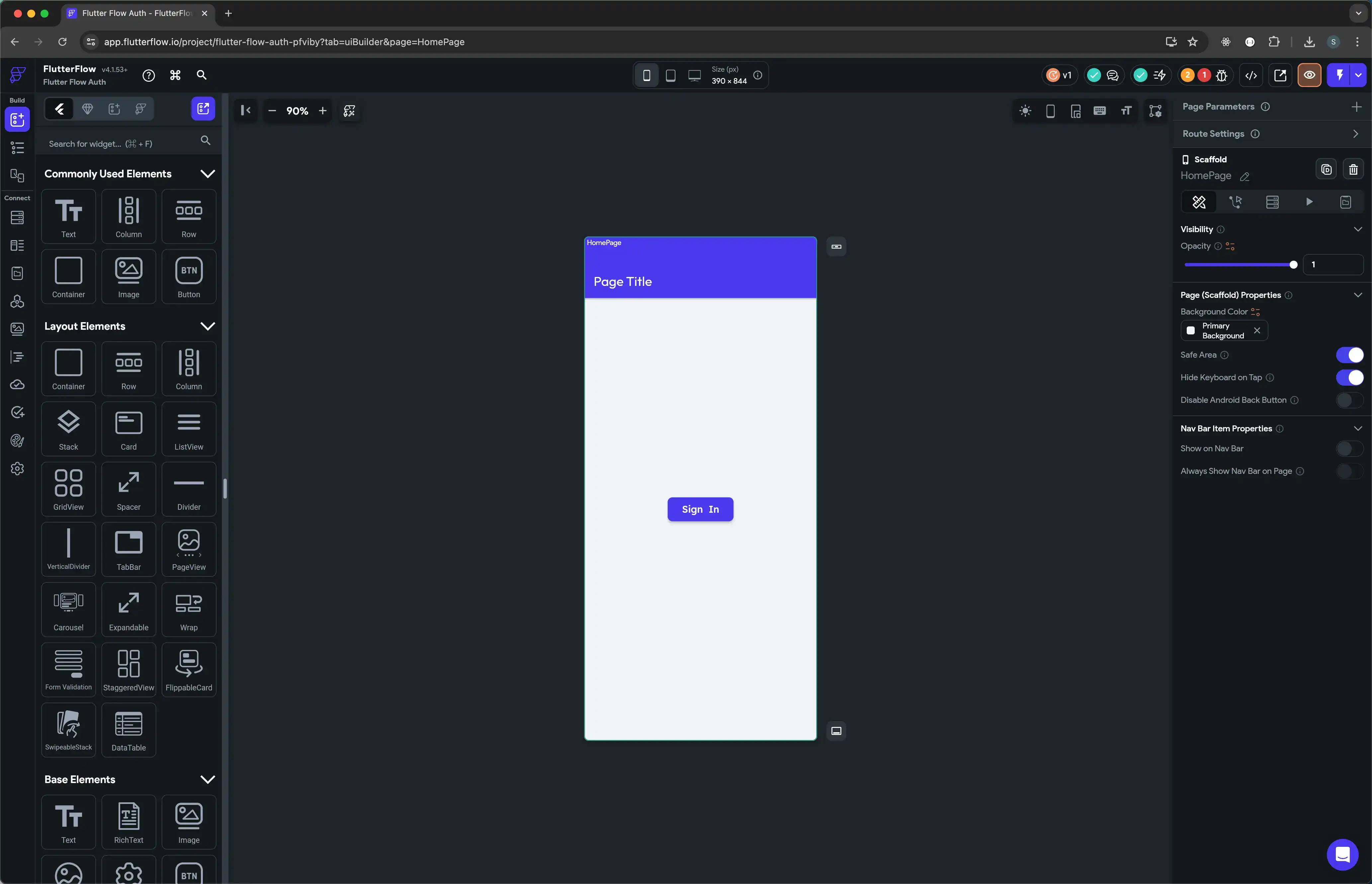 Create your UI in FlutterFlow. You can follow the FlutterFlow documentation to create your UI based on your requirements. In this tutorial, for the minimum requirement, we will assume you have two pages: