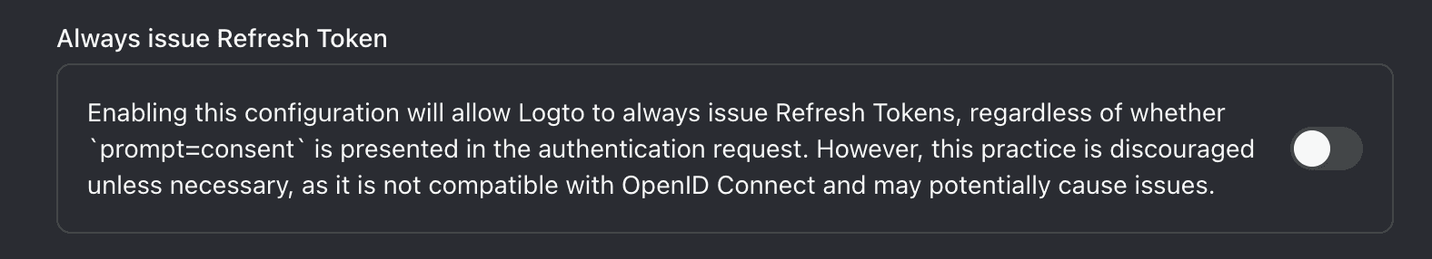 https://chat.openai.com/aip/foo123/oauth/callbackScroll down to the "Advanced settings" section and enable "Always issue Refresh Token" (this helps ChatGPT maintain the authentication state).