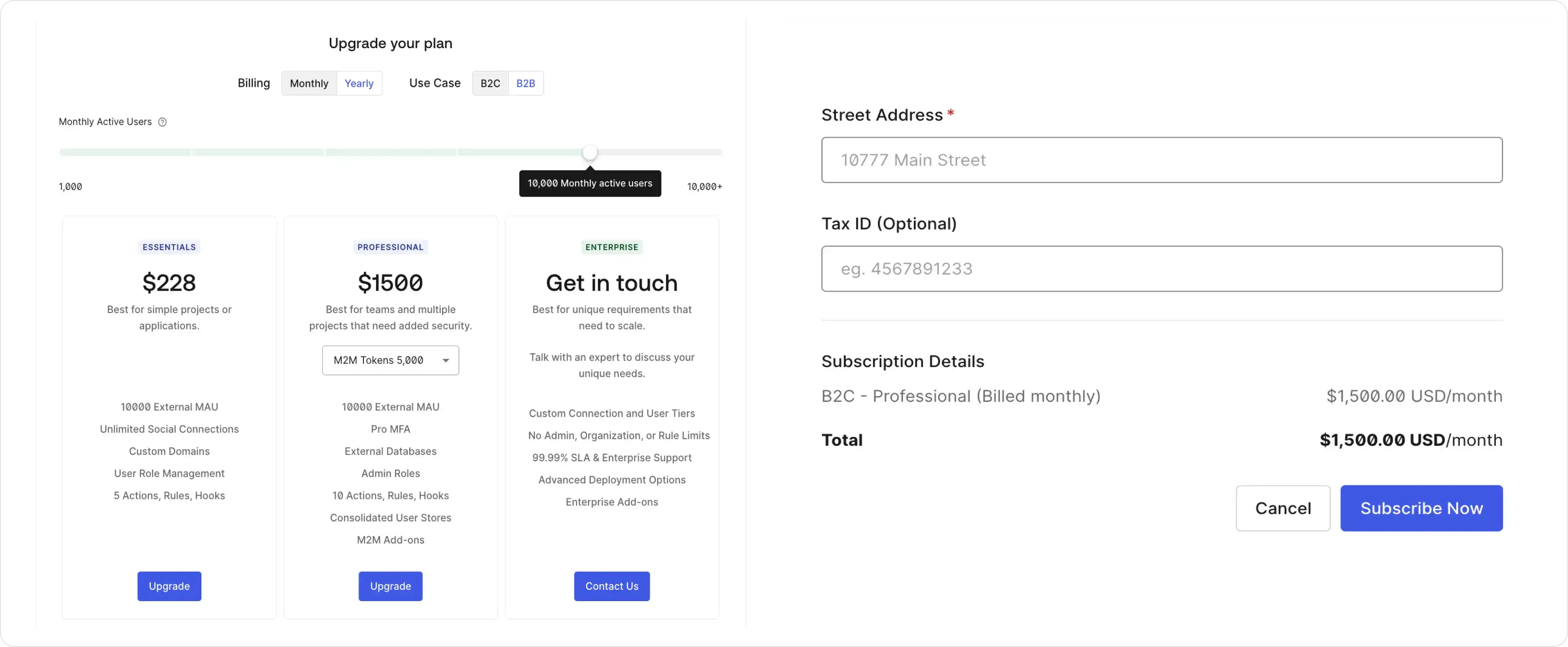 To illustrate with an example, if we consider 10,000 monthly active users (MAU), our pricing is up to 80% less than Auth0.