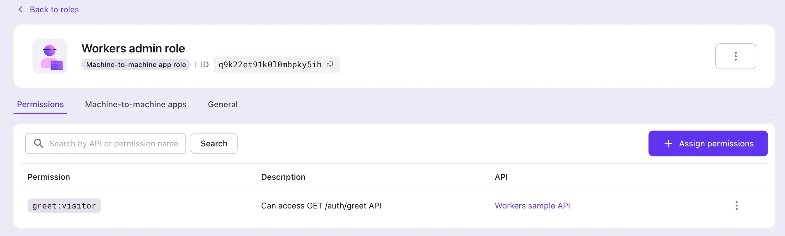 We use Machine-to-machine (M2M) as an example to access the protected Workers APIs because it's straight forward. If you want to grant access to your web app users, the setup is quite similar, but you should use βUserβ role instead of βMachine-to-machineβ role.
