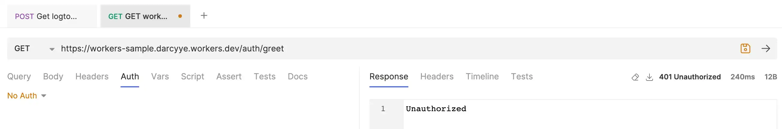 };After deploying the Workers project to Cloudflare, we can test whether APIs are successfully protected.