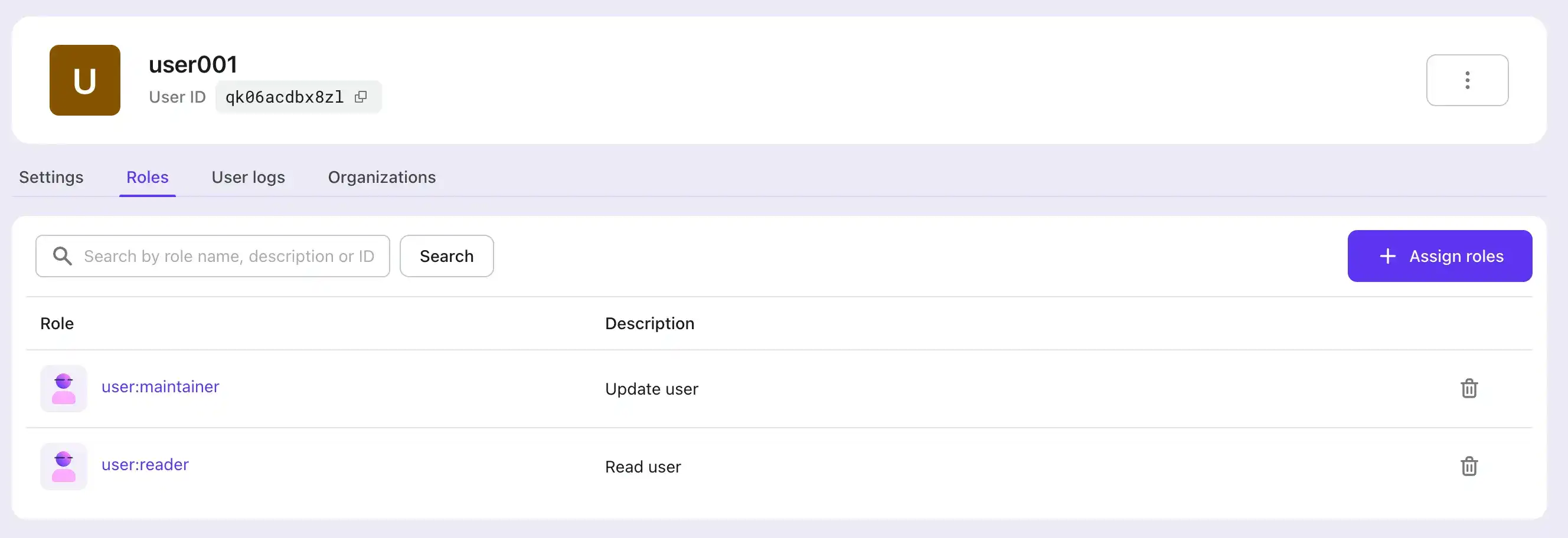 We need to create two scopes for the Hasura API resource mentioned in step 1, namely read:user and maintain:user, and then create two roles: user:reader (containing the read:user scope) and user:maintainer (including the maintain:user scope) to correspond one-to-one with Hasura's roles. And assign these roles to Logto users as needed.