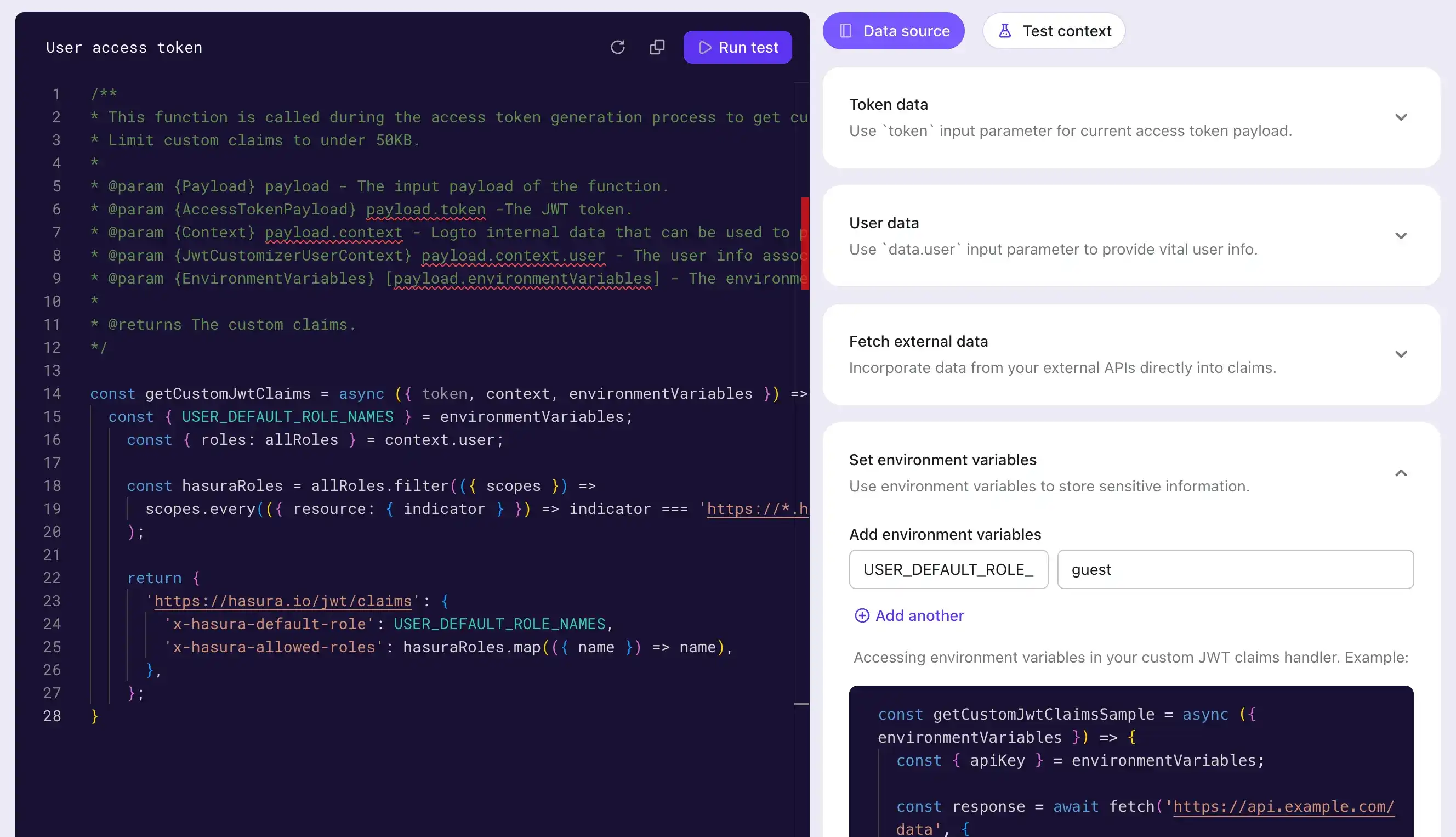 Using Logto's Custom JWT feature, customize the logic to add extra claims to the JWT-format user access token.