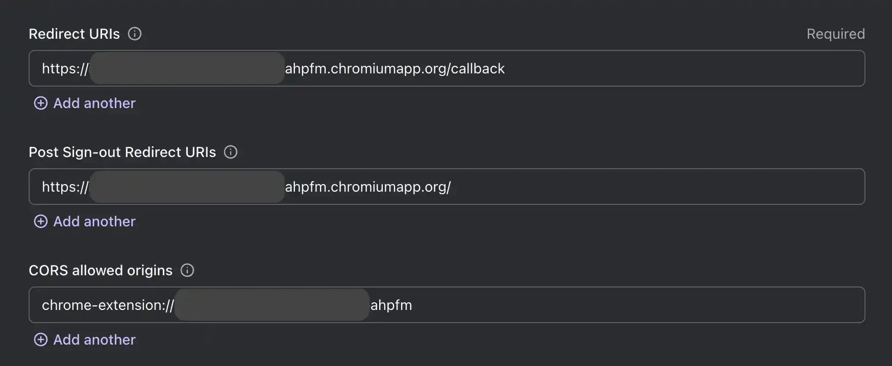 https://<extension-id>.chromiumapp.org/callback. - In the "Post sign-out redirect URIs" section, add the URI: