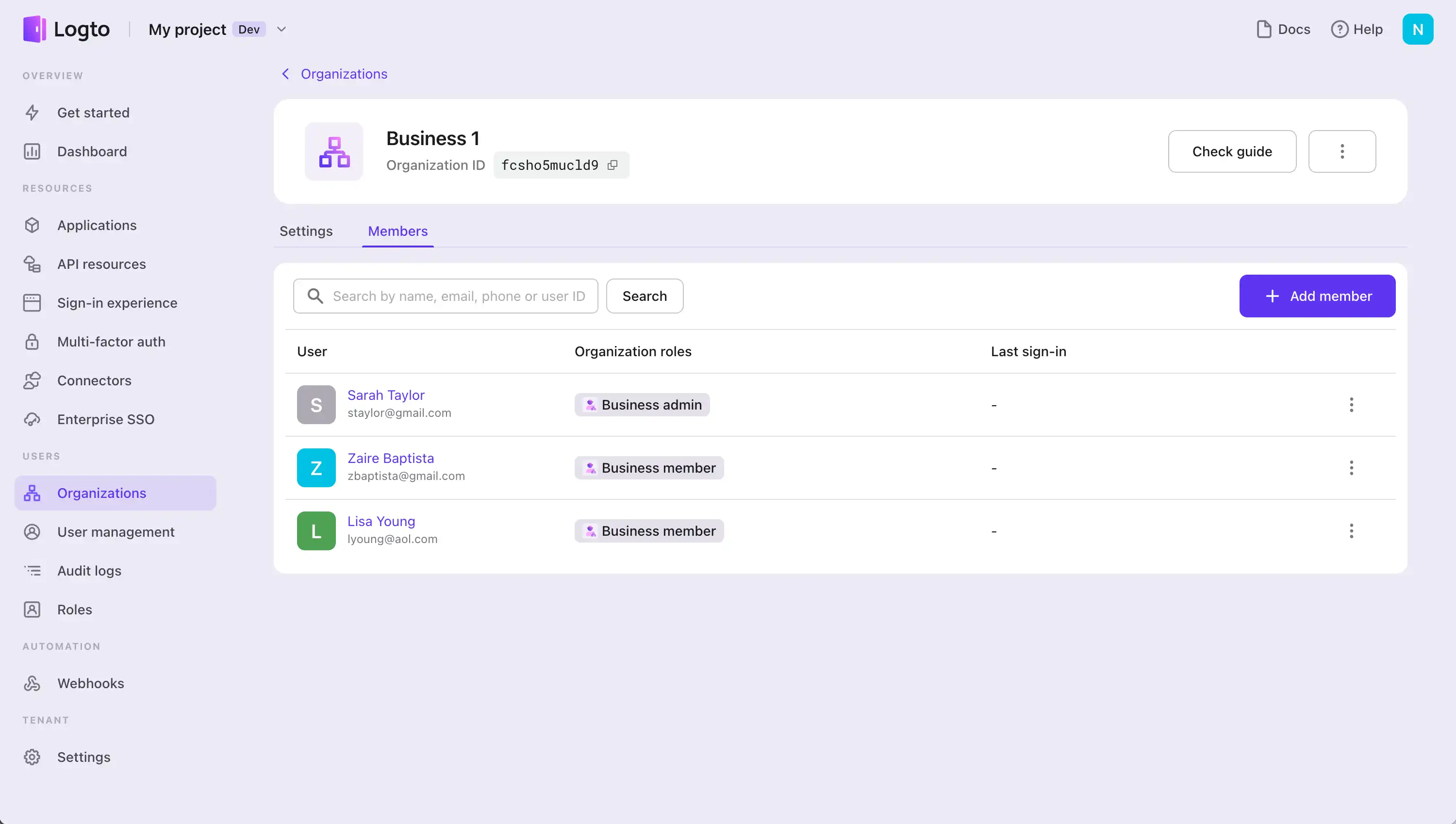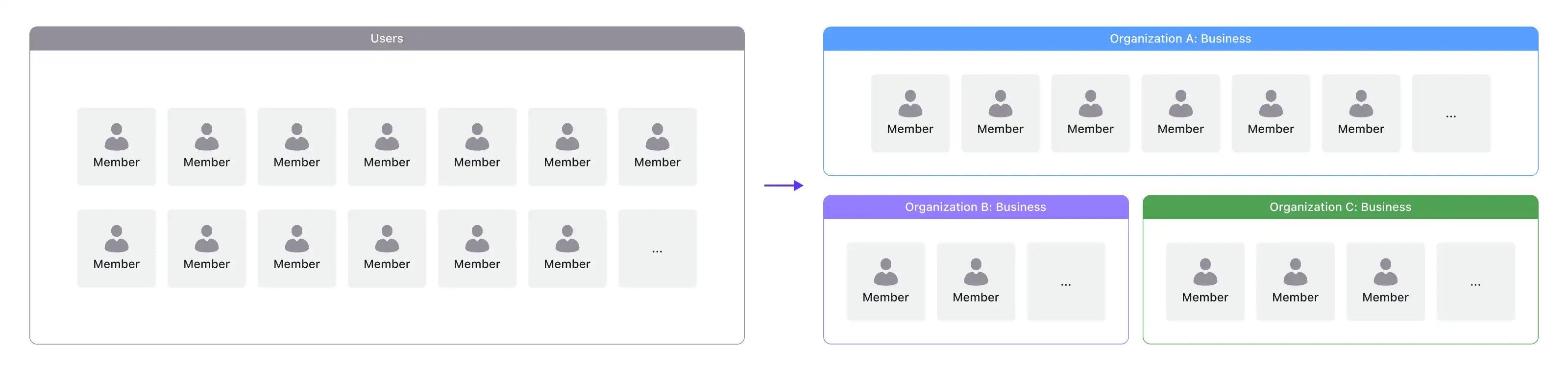 Organization is particularly effective in business-to-business (B2B) settings. In contrast to individual consumers, business clients often consist of teams, organizations, or entire companies, rather than just one person. The introduction of an organization as an entity is important, as it not only groups users but also provides a context for tenant isolation in multi-tenant apps.