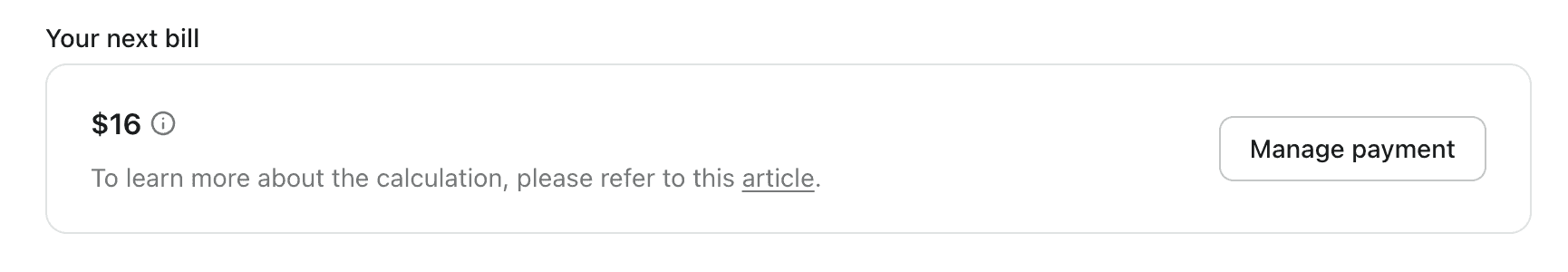 π‘ Your next bill = $16 (base price) + add-on cost (unbilled usage from current cycle) + add-on cost (next cycle charge)