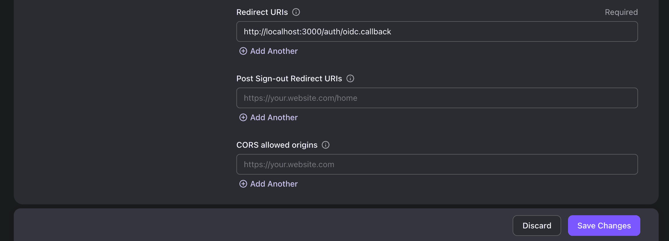http://localhost:3000/auth/oidc.callbackClick on the "Save Changes" button at the bottom. Once successful, keep this page open as it will be useful for the Outline configuration.