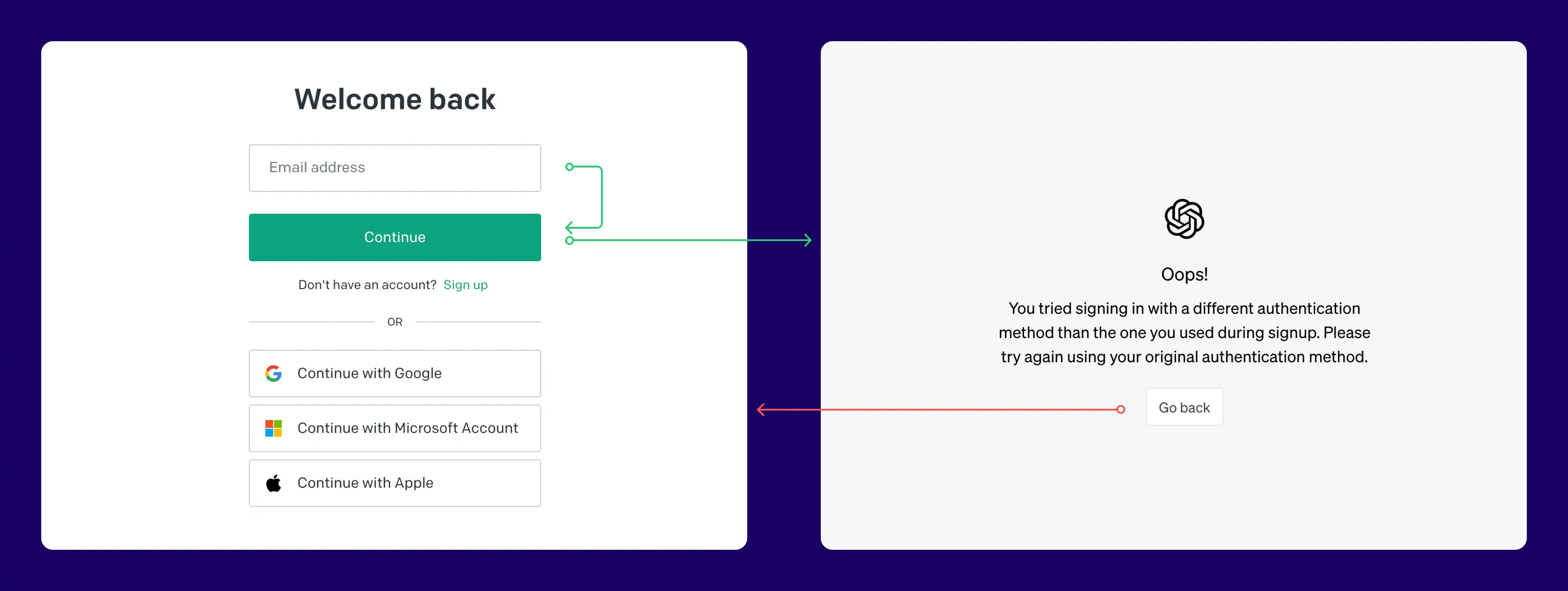 Recently, while attempting to sign in to ChatGPT, I occasionally found myself unsure whether I had used email sign-in or Google sign-in. This confusion resulted in encountering the following interface and necessitated logging out and back in. I have also experienced a similar issue with Pinterest.