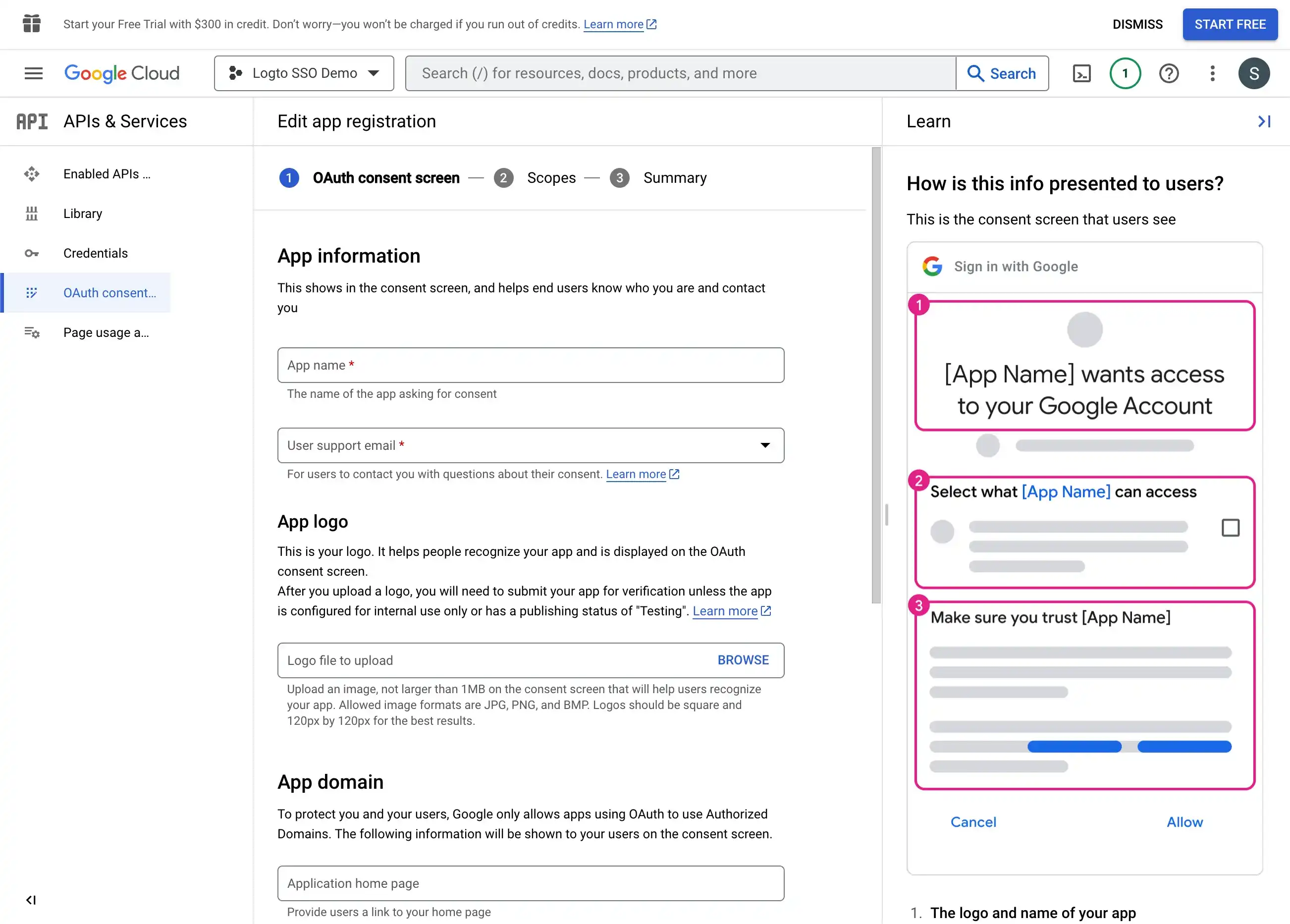For example in the case of Google, when you trying to create a Google OAuth client, you will be asked to provide a detailed consent screen configuration.