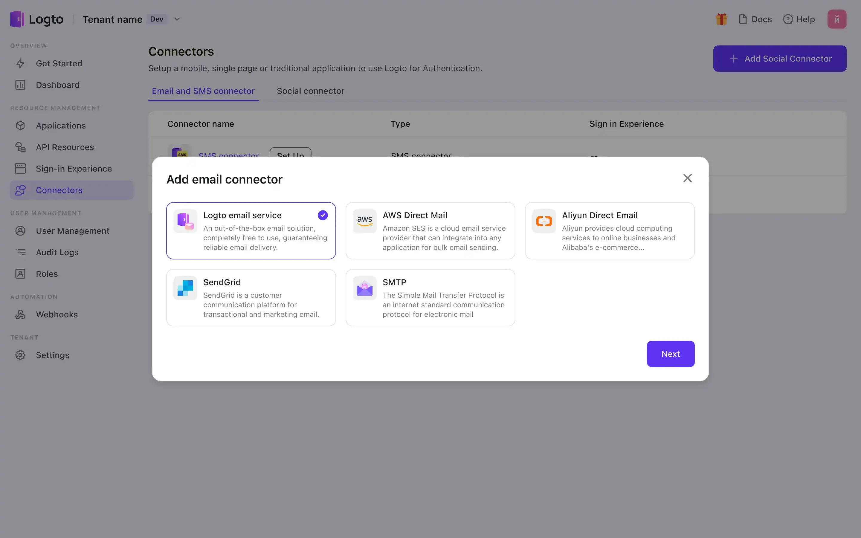 Choose Logto for verification email delivery