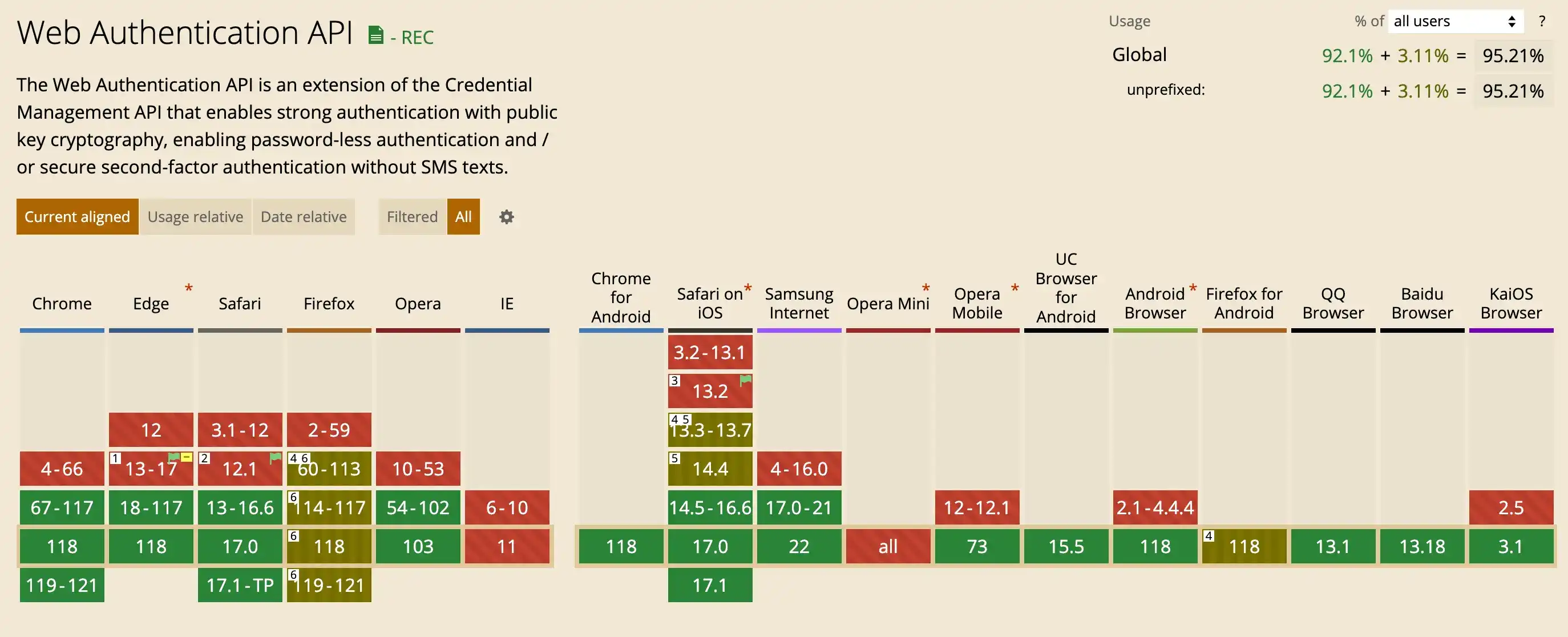 Some browsers or platforms either do not support WebAuthn at all or lack support for roaming authenticators. While current statistics of Caniuse show decent support, with 97.37% desktop and 96.3% mobile platform coverage, variations still exist across different browser versions and operating systems. For instance, Desktop Linux lacks support for platform authenticators, Android only fully supports WebAuthn on Chrome, and Internet Explorer on MacOS does not support WebAuthn. This necessitates admins to ask members to enforce specific browser or OS choices, or configure other alternative MFA methods.